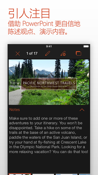 PowerPoint 演示文稿将以绝佳的方式显示,如同在 Mac 或 PC 上一样。