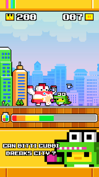 《Bitti Zilla》是一款小清新的休闲游戏。游戏中Bitti Cubbi将化身bitti哥斯拉,破坏城市的行动,见楼就拆就人就打,这一路上还会遇到金刚、奥特曼等等电视电影中经典的形象出现阻挡你的去路,若是走慢了就直接扑街了,游戏延续了Bitti Cubbi系列的像素风格。