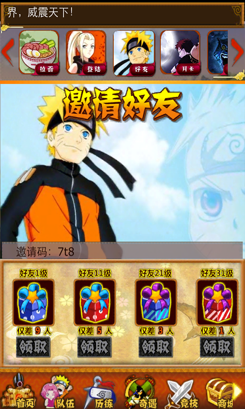 ①攻击阵容前期着重培养:前期还是以攻击阵容为主,因为要过剧情刷忍者,还要掠夺。