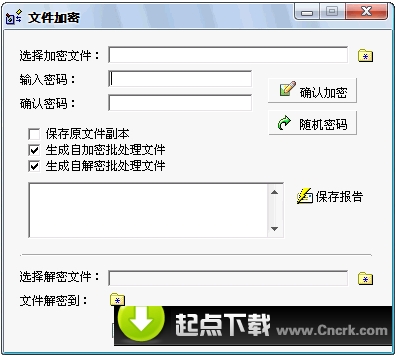 是一款非常小巧的自由软件,携带非常方便,无须安装.程序采用随机加密方式,可对任何类型的文件进行加密,但相比之下对二进制文件或结构复杂的文件加密效果更为显著。文件一经加密,任何工具(包括解密工具)也别想打开,就算勉強打开所看到的也只是一大堆杂乱无章的内容。加密速度极快,对十几兆的大文件也只需短短的几秒钟(AMDk62-400、64Mmem 中测试)。程序使用安全、绝不会对源文件造成破坏。程序会自动记录每一个文件在进行加密时的一些状态信息和步骤,并生成报告以供参考,且可以保存报告。支持同一文件的多次加密