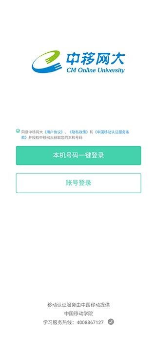 1、安装中移网大,点击运行,使用本机号码一键登录。