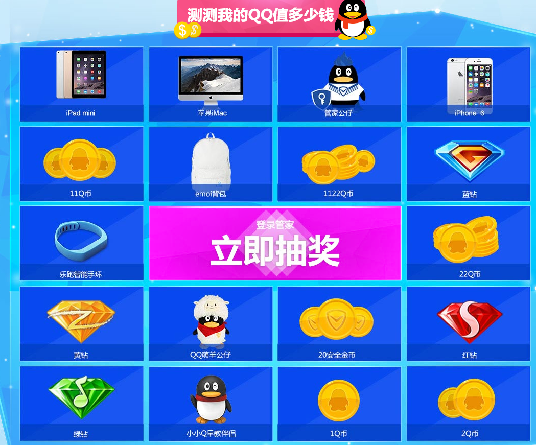 战狼QQ电脑管家嘉年华综合抢Q币辅助下载 1.0 免费版 嘉年华抢Q币辅助是一款针对QQ电脑管家嘉年华活动而出辅助工具。这款工具可以帮助用户自动参与活动领取Q币,里面还包含会员、黄钻、蓝钻、好莱坞、绿钻等,看看你的运气会不会爆棚。