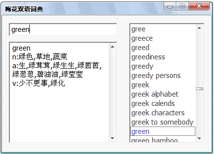 梅花双语词典是这样一款词典:绿色,简单,快速不占用资源。