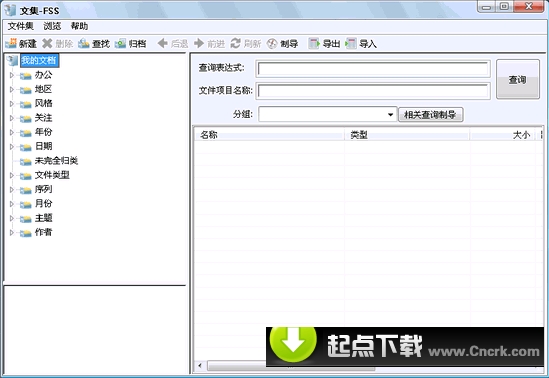文集(FSS)是一款采用全球首创的超树形目录的集合文件系统的精悍而又多功能的专业的文件及文档管理软件。它可以被广泛应用在个人的多媒体数据文件(mp3,图片文件,电影及视频文件等)和办公文件及电子文档(Doc, Excel ,PDF等)的管理领域中。它采用独创的超树形目录的集合文件系统,将文件放置在一些可以动态组合的虚拟的文件集合中,完全超越了树形目录结构和文件存放地点物理的限制。通过简便的设置便能在一个系统内部实现多种类型,多种来源及用途,存放在多个不同物理驱动器上的文件和文档的管理。并且在智能的“相关查询制导”功能的帮助下,可以使用户可以在参照文件及文档归类的关联性的基础上,根据自己习惯的检索路径方式,迅速缩小搜索范围,快速找到所需文件及文档。请在文件检索过程中注意“分组”和“相关查询制导”功能的使用,它们将使您事半功倍