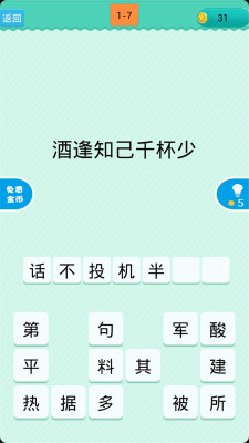 猜下句安卓版一个非常安静的作品,不仅是外表的安静,同样也是需要你有一个比较静谧的心境,不然的话是达不到那个意境的。试玩的时候还是比较讲究策略的,你的渊博的知识是一方面,还要看你的反映能力以及你的联想能力怎么样,只有几个因素都结合在一起的时候才知道答案。