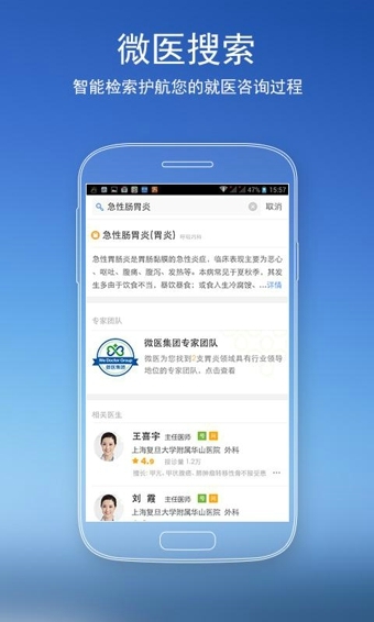 【挂号网】升级为【微医】【微医】是国家卫计委(卫生部)指定的全国就医指导平台——挂号网发布的便捷就医手机应用,致力于打造全国最大的便捷就医和医患交流移动应用服务平台。微医APP专为医生和患者量身打造,为了您的健康我们一直在努力!