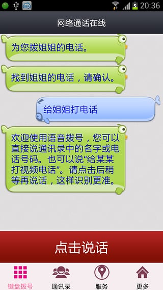 1. 新增TTS技术,可实现人声播报2. 新增了数字识别,用户可以直接说出号码
