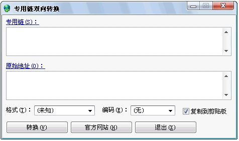 专用链双向转换 V1.6.0.160 简体中文绿色免费版 支持格式:支持市面上的各种格式,包括网际快车(FlashGet)、迅雷(Thunder)、QQ旋风、、FS2You等;