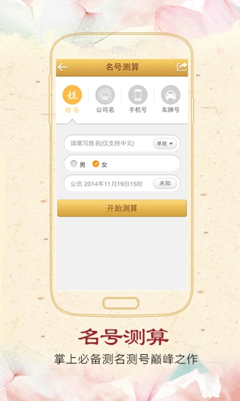 【业界命名权威明星顾问,掌上名号测算巅峰之作】名号测算是测名改名、手机/电话/车牌号码测算最精准,内容最丰富的移动运势应用!