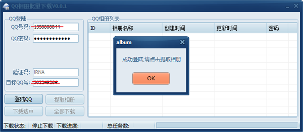 指定任意一个QQ号码,即可下载对应空间内的相册