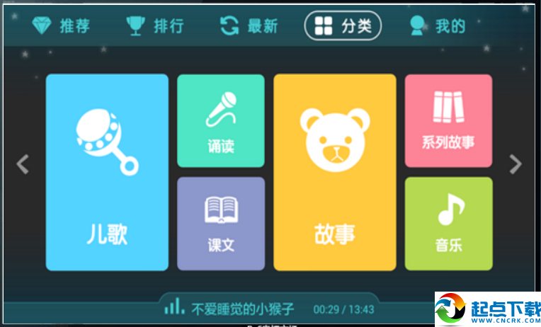 》首创按场景的播放模式,更贴合您和宝宝的听故事需求;