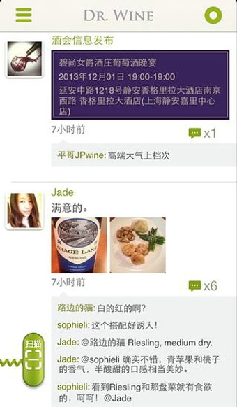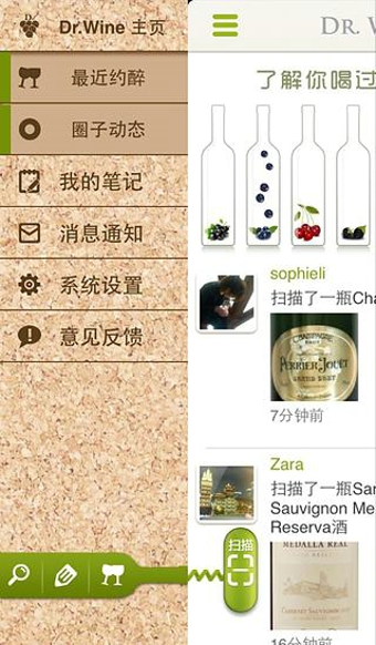 Dr.Wine葡萄酒博士是国内首款葡萄酒社交应用,集葡萄酒扫描、分享、搜索及社交互动于一身。用户可随时随地用手机拍摄酒标,通过后台扫描识别技术,获取葡萄酒的各项信息;还能在线收藏葡萄酒,记录品酒心得,发表文章供同好欣赏;更可以发起约醉邀请,结识更多的葡萄酒爱好者。