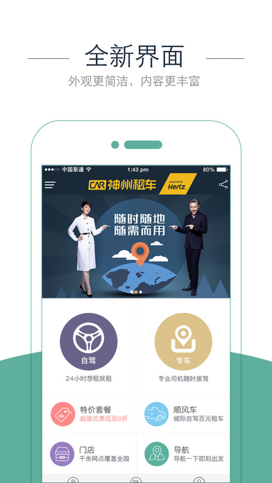 神州租车是中国汽车租赁行业的领跑者,积极引进国际上成功的汽车租赁模式,结合中国客户的消费习惯,为全球客户提供中国地区的全国连锁汽车租赁服务。神州租车客户端提供全国范围的汽车租赁预定服务、门店查询和价格查询服务,让您出行更自由。