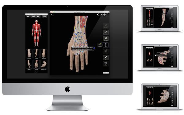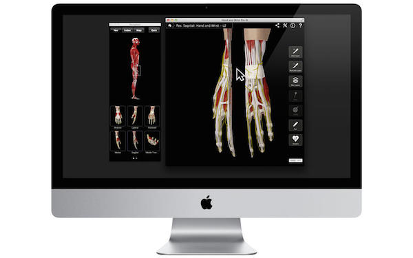 4、每个截面显示肌肉、 神经、 血管和骨骼系统与每个系统上的详细信息 — — 用一根针,只需单击。