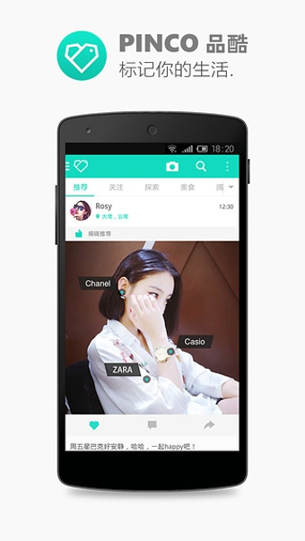 1:Pinco,最人气最具设计感的App品牌Weico又一用心新作;2:标注品牌,用最简单的方式标注你爱的品牌,轻松Pinco出你最喜悦的生活态度。