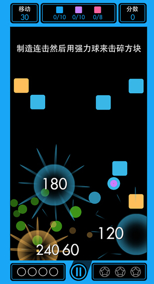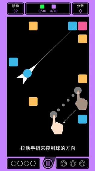 游戏中玩家通过控制小球碰撞方块,用最少的步数消灭更多的方块,同时消灭的分数越高星星越多。游戏玩法感觉自己在打桌球一样的,更多精彩进入游戏体验吧!游戏每个关卡都有不同的任务等着玩家,游戏越玩越有意思更本停不下来!