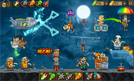最精彩的还是玩的过程啦!就拿第六关来说,玩家要在箭头有限的次数内,利用炸弹打下规定数量的僵尸,一定要配合好,不然有可能过不了。