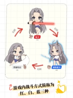 只要你懂得石头剪刀布,就能掌握游戏的基础战斗方式!游戏里的战斗方式简称为红、白、蓝这三种。