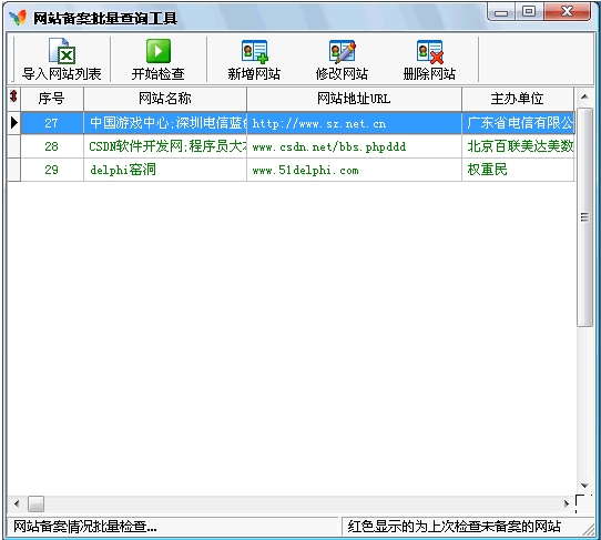 网站备案情况批量检查工具 V1.2.0 简体中文绿色免费版 网站备案情况批量查询实现批量的网站备案情况、IP地址及位置的跟踪检查。