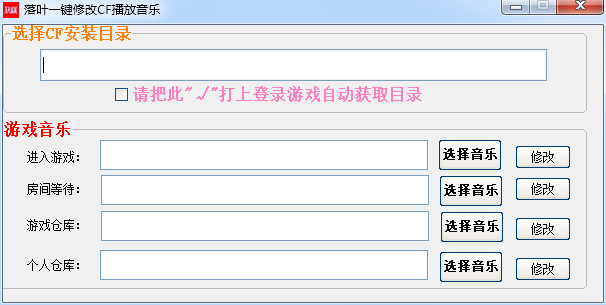 CF落叶背景音乐修改工具是穿越火线游戏中的一款修改工具,专用于修改游戏中的背景音乐,你可以将你自己喜欢的音乐放上去,成为你专属的游戏背景音乐。