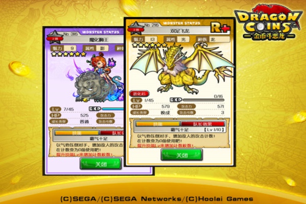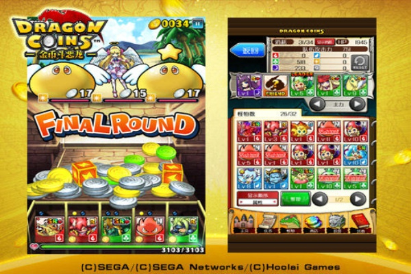 《金币斗恶龙》包含了多游戏元素——推币、宠物、育成、RPG等等,今天所说的《金币斗恶龙》是汉化后的作品,汉化工作有很高的完成度,大家可以放心。画面方面,《金币斗恶龙》其实并无殊胜之处,没有大型3d游戏的美轮美奂,游戏角色的设定在市面上也可以见到许多,不过当怪物触发技能时候的动态画面,却有一种激励人心的味道,仿佛融入其中。游戏的声音与游戏画面配合得很协调,当金币或者银币落下时候,清脆声不绝于耳。