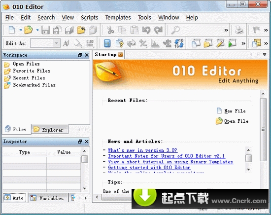 010 Editor是一个全新的十六进制文件编辑器,它有别于传统的十六进制编辑器在于它可用"模板"来解析二进制文件, 从而让你读懂和编辑它. 它还可用来比较一切可视的二进制文件.功能多多.
