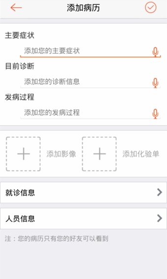 APP中的“云病历”功能将对患者形成持续真实的医疗历史记录,形成完整的个人健康医疗信息。患者可以将自己的病历和症状信息通过图片、声音、文字等形式进行保存,医生可详细的了解到患者病历史,并可对病历记录进行批注备忘。这样不仅可以在就医时提供患者历史的宏观描述,“贴心医生”还可在日常生活中提供及时的健康建议和帮助。