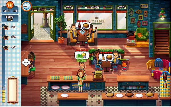 17个紧张的关卡,和前作一样,不同需求的客人让你应接不暇。艾米丽的孩子会时不时的四处爬动,工作中也要抽出时间照顾小孩。
