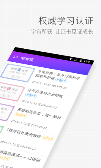 1、自主课程全新升级,支持作业与认证,可以随时学习,快速拿证书啦