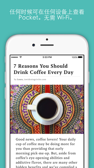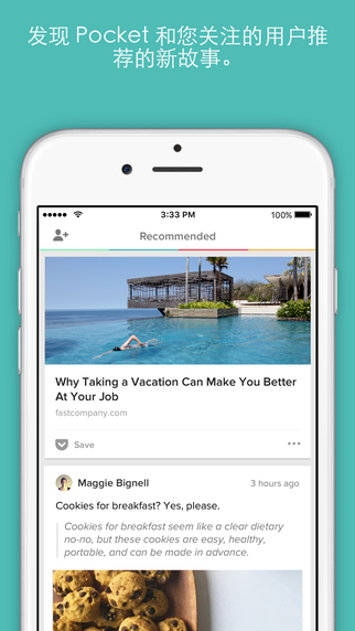 随地查看,即使在脱机时如果已保存到 Pocket,相当于已保存到您的手机、平板电脑或计算机上,即使脱机时也可查看。非常适合于远程办公、旅行和卧床休息时阅读。