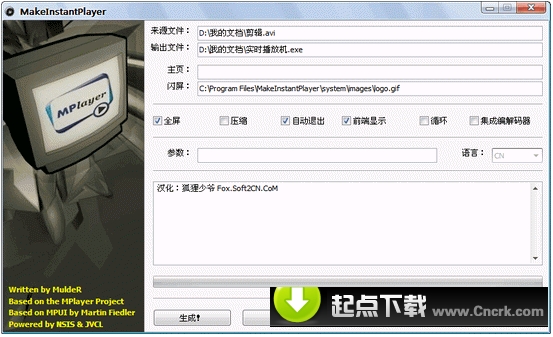 MakeInstantPlayer V1.13 汉化绿色特别版 MakeInstantPlayer 是一个转换器,将视频文件转换为 exe 可执行文件并集成 MPlayer 在里面,利用 MPlayer 来完成播放任务。即使电脑上啥播放器都没有,也照样能观看。