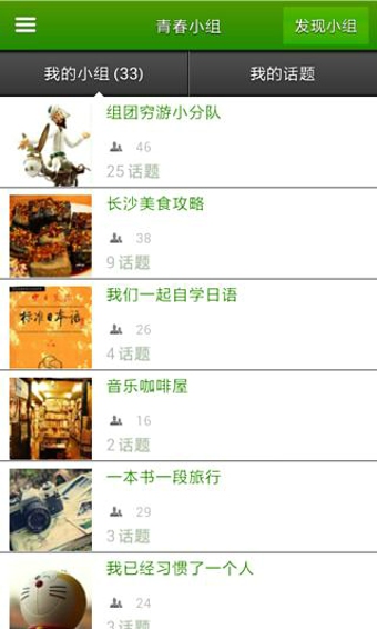 3.青春小组-发现兴趣小组,与兴趣相投的人交流互动;