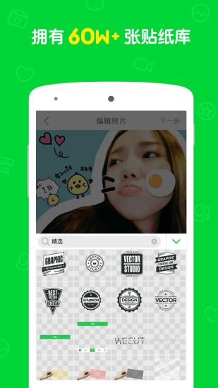 Wecut内自带齐全丰富的贴纸和背景,让你的作品躁起来!