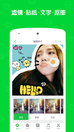 1.新增动态人脸贴纸,脸部自动识别,轻松拍出逗萌视频。