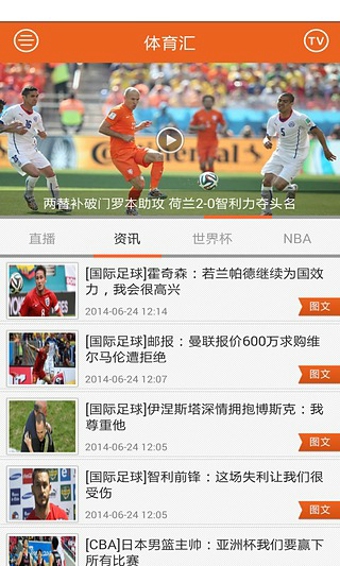 体育汇是一款为广大体育迷朋友精心打造的,集赛事预告、赛事直播、赛事提醒、相关新闻及视频于一体的资讯软件。涵盖了足球、篮球、网球、棒球、斯诺克、F1等主流体育类型,囊括了英超、意甲、西甲、英超、欧洲杯、欧冠、世界杯、中超、亚冠、NBA、CBA、奥运会等顶级赛事,只要有你所关注的体育赛事,即可开启闹钟提醒,让你不会错过丝毫的精彩时刻。体育汇让你亲历奥运会精彩全程,与你分享世界杯狂欢盛宴,助你体验欧洲杯群雄逐鹿。本应用采用先进的数据压缩技术,为你节省宝贵的时间和数据流量,让你畅想精彩赛事。炫酷的应用界面,赛事新闻和预告直观展示