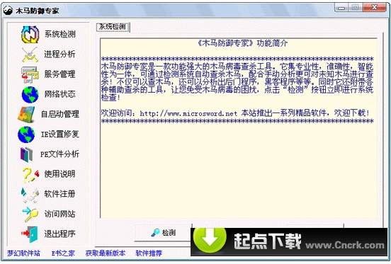 木马防御专家是一款功能强大的木马病毒查杀工具。它集专业性,准确性,智能性为一体,可通过检测系统自动查杀木马,配合手动分析更可对未知木马进行查杀!不仅可以查木马,还可以分析出后门程序,黑客程序等等。同时它还附带各种辅助查杀的工具,让您免受木马病毒的困扰,您不妨下载试试