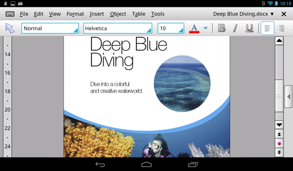 TextMaker HD是平板电脑的唯一完整的字处理器 - 全套功能进行编辑和格式的文档,你知道,从你的桌面文字处理软件是在您的处置。 最后,你可以像你做你的PC上创建和你的平板电脑上编辑文档!【软件特点】