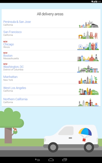 目前参与当天到货的商家也很有限,包括Target、Walgreens、Staples、American Eagle、Toys“R”Us/Babies“R”Us、Blue Bottle Coffee、Palo Alto Toy &Sport及Raley's Nob Hill Foods等,选好商品后即可指定当天送货时间。Google尚未决定当日到货的物流价格,测试阶段则是提供6个月的免费服务。