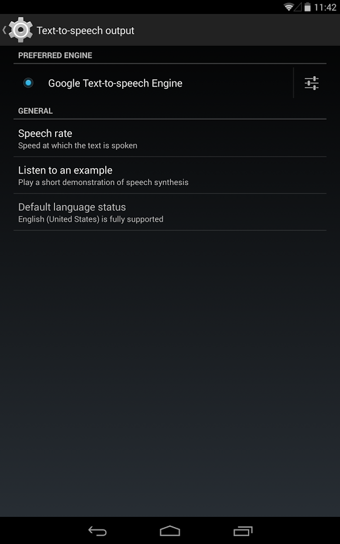要在您的 Android 设备上使用 Google 文字转语音引擎,请转至“设置” & amp; gt;“语言和输入法” & amp; gt;“文字转语音输出”,然后选择“Google 文字转语音引擎”作为首选引擎。