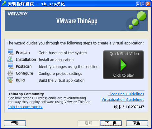 VMWare ThinApp是VMware收购 Thinstall 后推出的Application Virtualization ( 应用程序虚拟化)产品,产品主要功能就是让客户端在不需要安装应用程序的情况下,相关的应用程序及其配置环境可以由服务器统一提供,实现客户端和应用程序的快速部署及管理。最大的竞争对手就是目前市场占有率已非常高的 Citrix 。【软件功能】