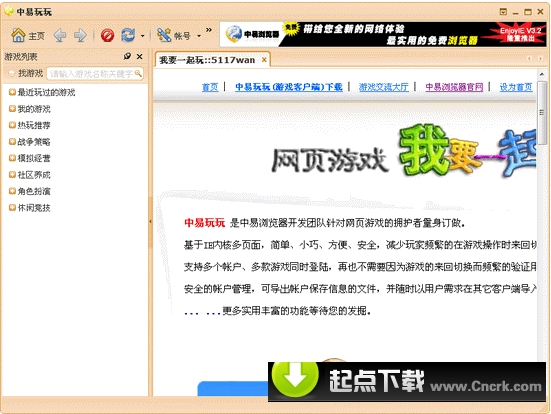 中易玩玩 V1.0 简体中文绿色免费版 是中易浏览器开发团队针对网页游戏的拥护者量身订做。基于IE内核多页面,简单、小巧、方便、安全,减少玩家频繁的在游戏操作时来回切换浏览器窗口。支持多个帐户、多款游戏同时登陆,再也不需要因为游戏的来回切换而频繁的验证用户身份。安全的帐户管理,可导出帐户保存信息的文件,并随时以用户需求在其它客户端导入
