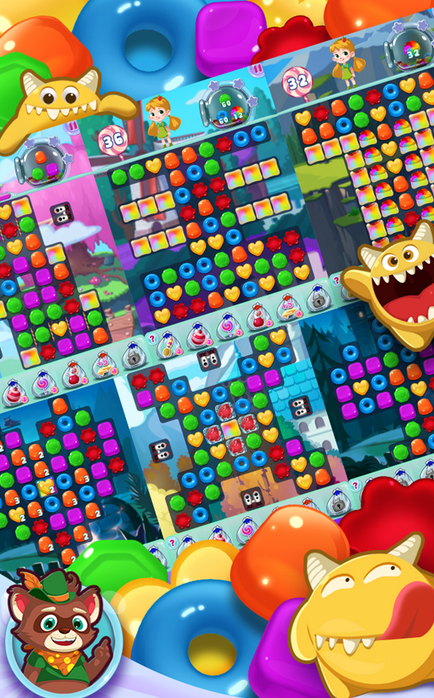 除了收集糖果外,冒险的途中还会遇到许多其它难题:例如绞尽脑汁,打开被层层包裹的彩虹糖;击晕贪吃的小怪兽,再次连击来将它打跑;或者触发神秘的魔法漩涡,来产生更多甜甜的糖果...掉以轻心的话可是会一败涂地哦!