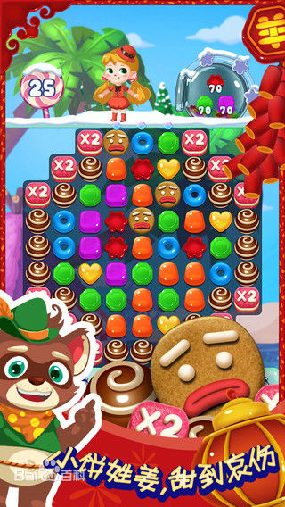 1、新春新玩法,寻找小象软糖:糖果下面藏着好多小吉象QQ糖,只要消除上面的水晶糖就能得到,快来发现吧。(小提示:藏着软糖的糖果上会有隐隐的紫色哦)