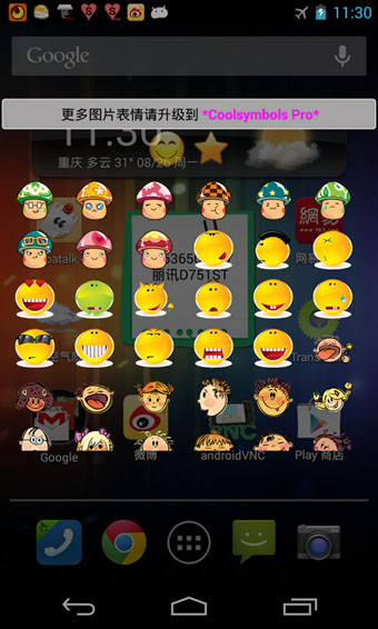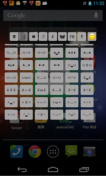 点击漂浮在屏幕上的心形按钮(也可以将其设置到通知栏)就可以选择任何你喜欢的图形和符号,然后粘贴到简讯、facebook、twitter、论坛帖子、文本编辑器中。