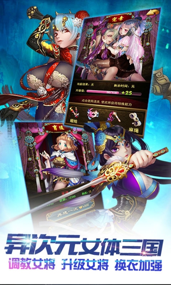 三国群殴传—年度最佳三国策略卡牌手游大作,有着超乎想象的颠覆式将领形象,萝莉袁绍、御姐孙权、女王曹操,各路英雄皆绝色,浓妆淡抹总相宜。独创的实景地图玩法让玩家在自己的真实地理位置拥有主城,结合策略、国战、资源点抢占、武将养成等特色玩法,打造独一无二的后宫大军,激情领土战争永不停。