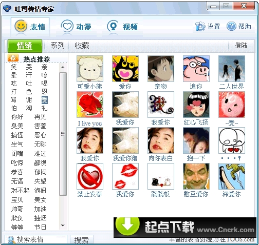 吐司传情专家(TOOS)是互联网沟通的免费娱乐工具(目前支持QQ、MSN、IE浏览器),整合目前网上流行的各种主题表情,支持MSN发送超大图,QQ发送传情动漫,IE浏览器网页插入表情图片,内容庞大经典。以人类面部分析技术打造的视频虚拟摄像头,动态生成3D角色,众多大头贴,道具让枯燥得视频聊天富有无穷乐趣,是聊天、上网的必备工具。