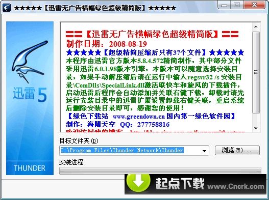 本程序由迅雷官方版本5.8.4.572精简制作,其中部分文件【16个核心文件,ComDlls中6个,Program中8个】采用迅雷6版本引擎,完全解决了在脱机状态下初次启动迅雷时的假死问题,本次更新后的版本已经在互联网和局域网中做了测试,使用一切正常,下载速度相当快而且稳定,不存在占用内存严重问题,本次利用迅雷6版本核心文件进行移植是成功的,是最完美的版本,局域网用户的首选【局域网不需要雷区】,本版本可以随意选择安装目录,如果手动解压缩后请运行解压缩目录中的【迅雷专用链】补丁激活联快车和旋风的下载插件,启动迅雷后程序会自动添加并关联右键下载,卸载时请先运行安装目录中的迅雷扩展设置卸载右键关联,重启系统后删除安装目录即可,感谢您的使用!