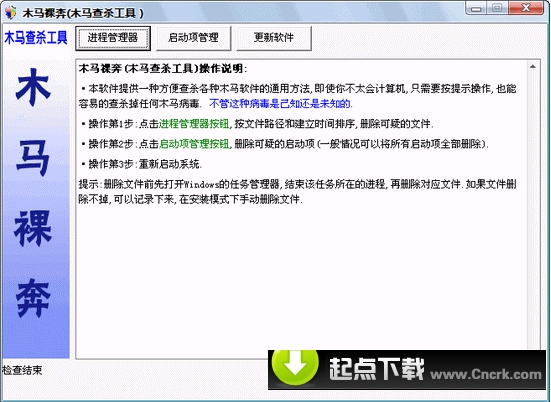 木马祼奔(木马查杀工具)本软件是一个简单并强大的木马查杀工具,可以查杀各种木马与病毒.
