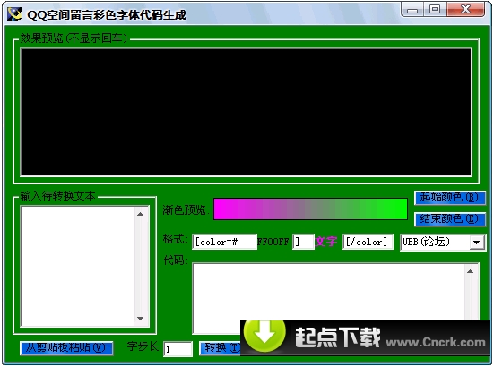 一款很好的软件!可以把字体转换成QQ空间代码、网站代码、UBB代码!让你留言的时候更具个性,同时也给你带来了极大的方便,《QQ空间留言彩色字体代码生成》是你QQ空间的管家!欢迎大家的使用!