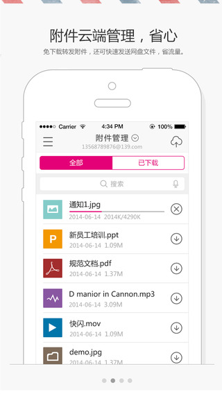 附件管理,可批处理断点下载,可发送多格式文件。